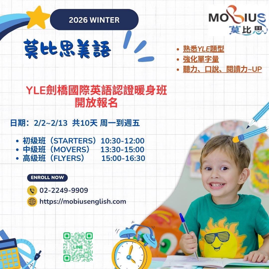 最新消息 最新消息 2025-11-14 中和校 2026 寒假課程 莫比思美語/磐索美語中和校 2026 寒假英語課程,歡迎全程參與,享受閱讀的樂趣! 課程內容及線上報名: https://lin.ee/l9icpaN電話:(02) 2249-9909地址:新北市中和區枋寮街40號1樓 (捷運: 中和站、景安站、永安市場站。公車: 中和派出所、中和廟口站)#莫比思美語中和校 #閱讀學美語 #磐索美語中和校 上一篇 下一篇